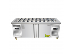 两种款式的沙拉桌都设有一个原料区,以便放置各种GN容器。EMEP / CMEP-100有速动板,延长食物保鲜时间。EMEP / CMEP-100 G还有一个后侧玻璃护板,保护原料区。